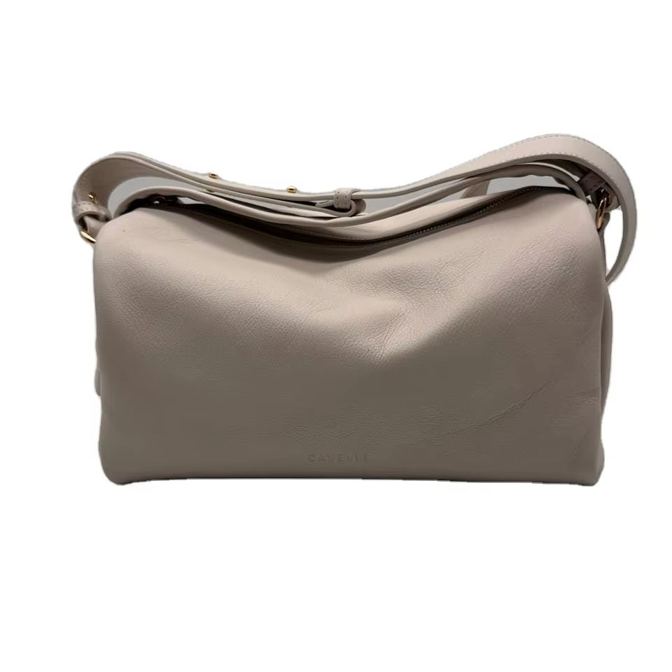 Beige Designer Premium Genuine Leather Women's handbag with handstrap and shoulder strap zipped closure and inside pockets