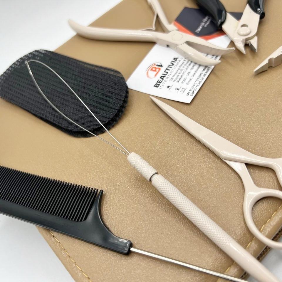 Beige Hair Extension Tools Kit Eco Friendly Stainless Steel Keratin Tip Hair Tools Hair Beads & Gripper with Custom Brand Name