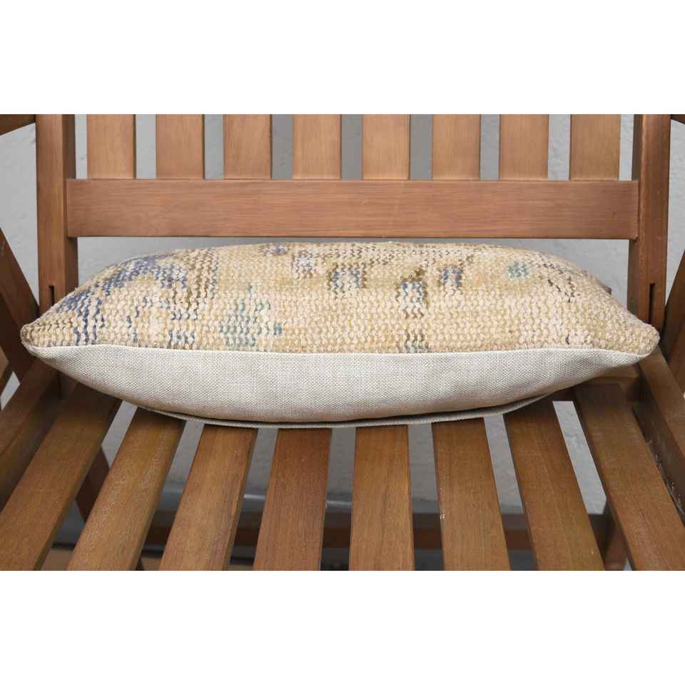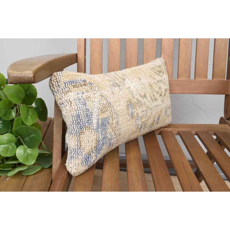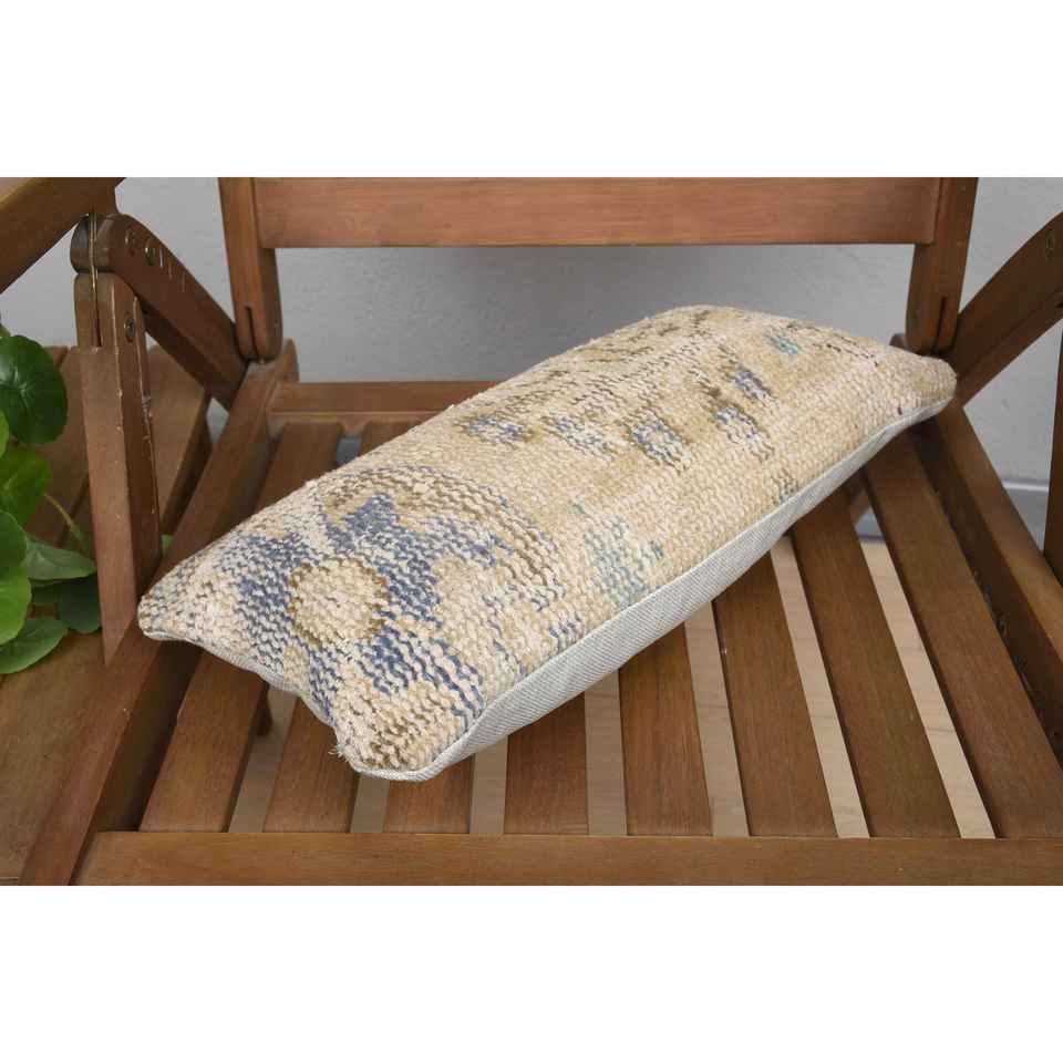 Beige Kantha Patchwork Wool Pillow 8x16 Inch Rustic Floral Throw Pillow Vintage Embroidered Print Premium Woven Style Portable