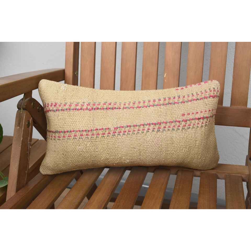 Beige Kilim Patchwork Wool Pillow 8x16 Inch Eco-Friendly Non-Slip Decorative Cushion Vintage Fluffy Leaves Pattern Removable