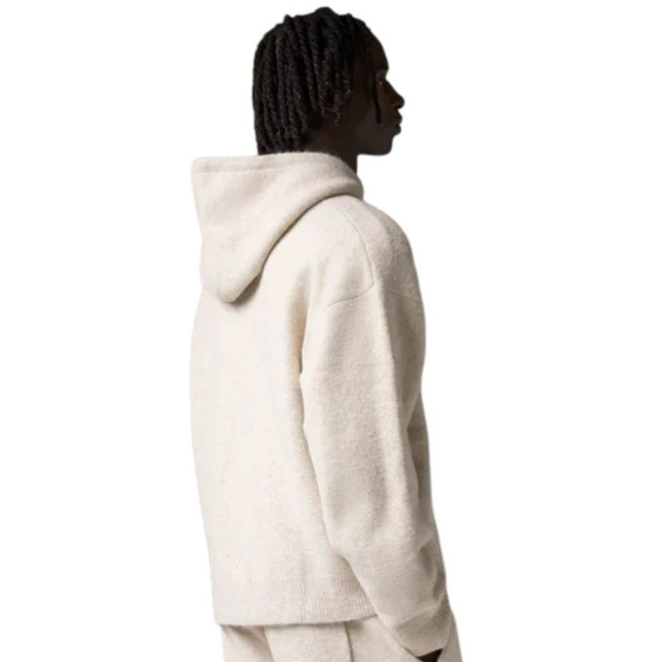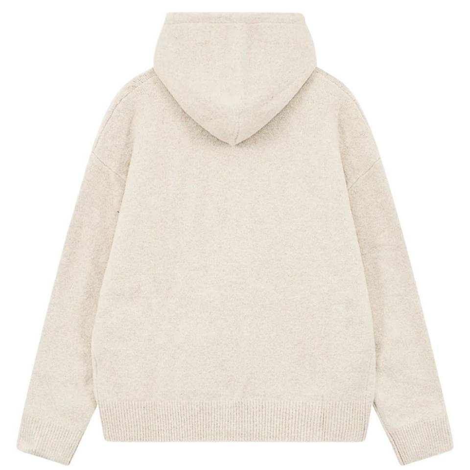 Beige Knit ZipUp Hoodie with Emblem Cozy and Stylish Hoodie for Men and Women Perfect for Casual and Everyday Wear