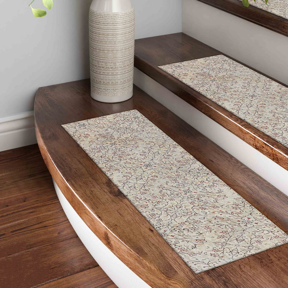 Beige Modern Bohemian Printed Rug, Soft Tones, Easy To Clean, Machine Washable,Step Rug