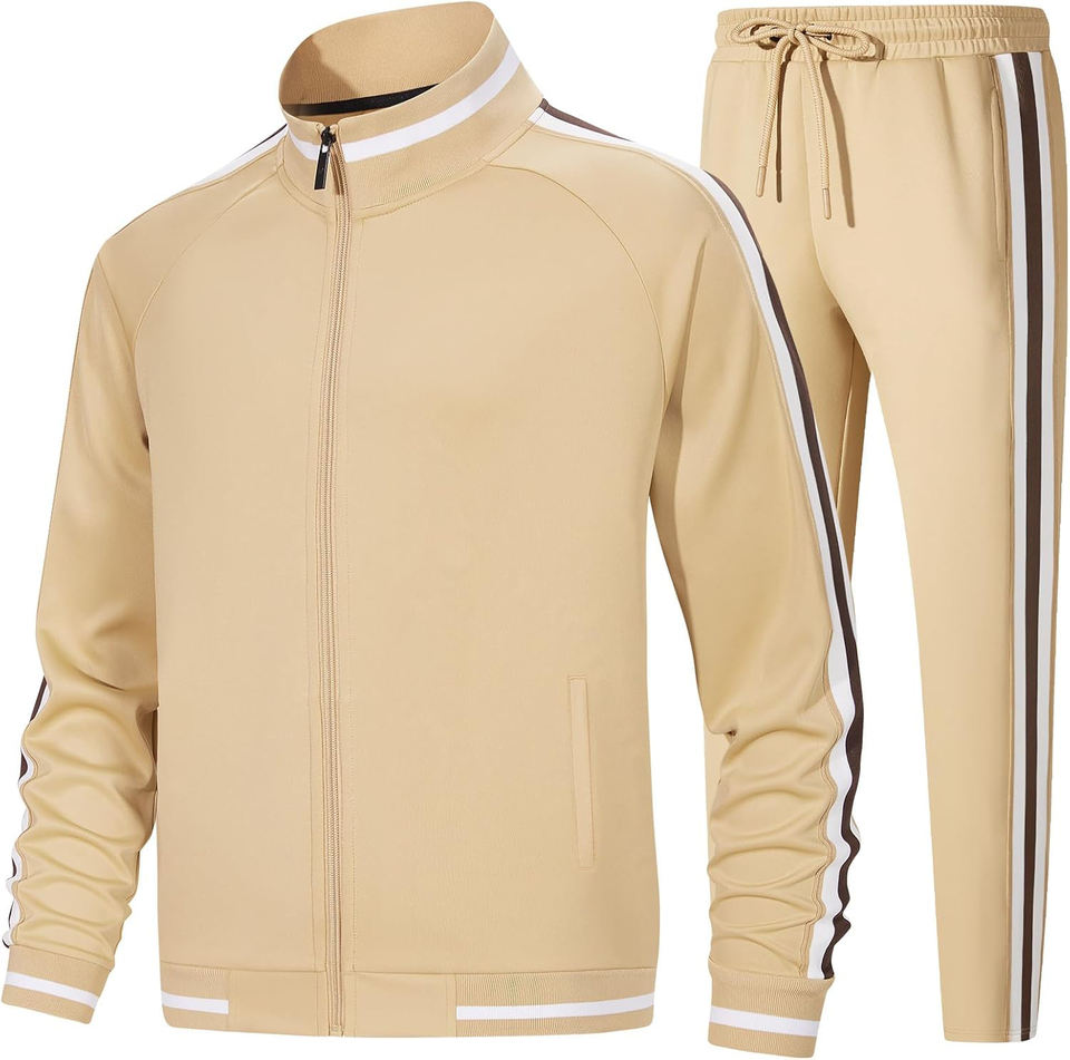 Beige Track Suits for Men Set Tracksuit Sweatsuits 2 Piece outfits BY STYLE BOY & Co