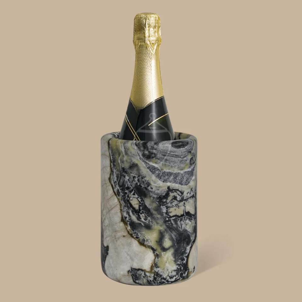 Beige Travertine Wine Bottle Chiller Marble Natural Stone Ice Free Cooler Rustic Polished Cylinder for Bar Decor