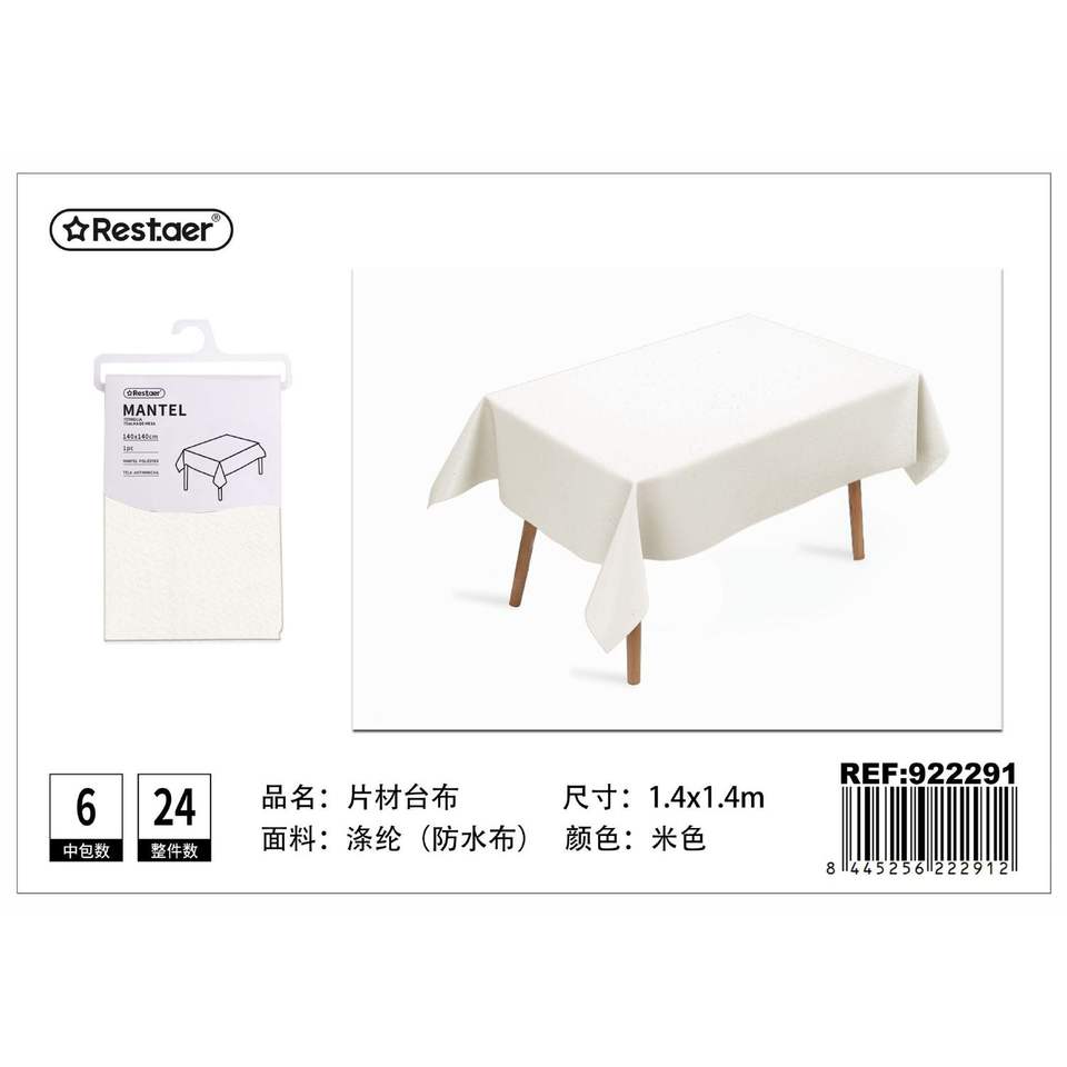 Restaer Beige Waterproof Tablecloth 1.4x1.4m Rectangular Nonwoven For Home Dining Room