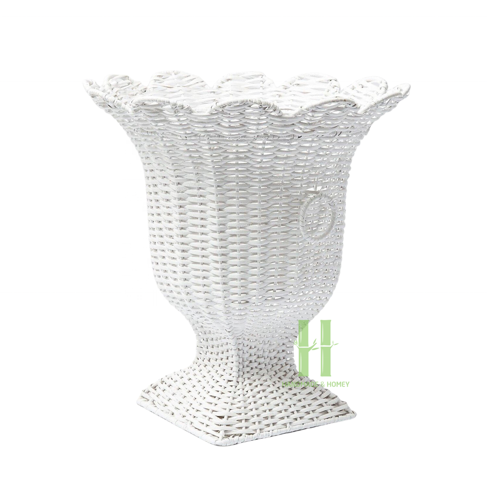 Beige Wicker Footed Urn Modern Coastal Rattan Vase for Flower Decoration Variety of Design OEM in HNH Craft Factory