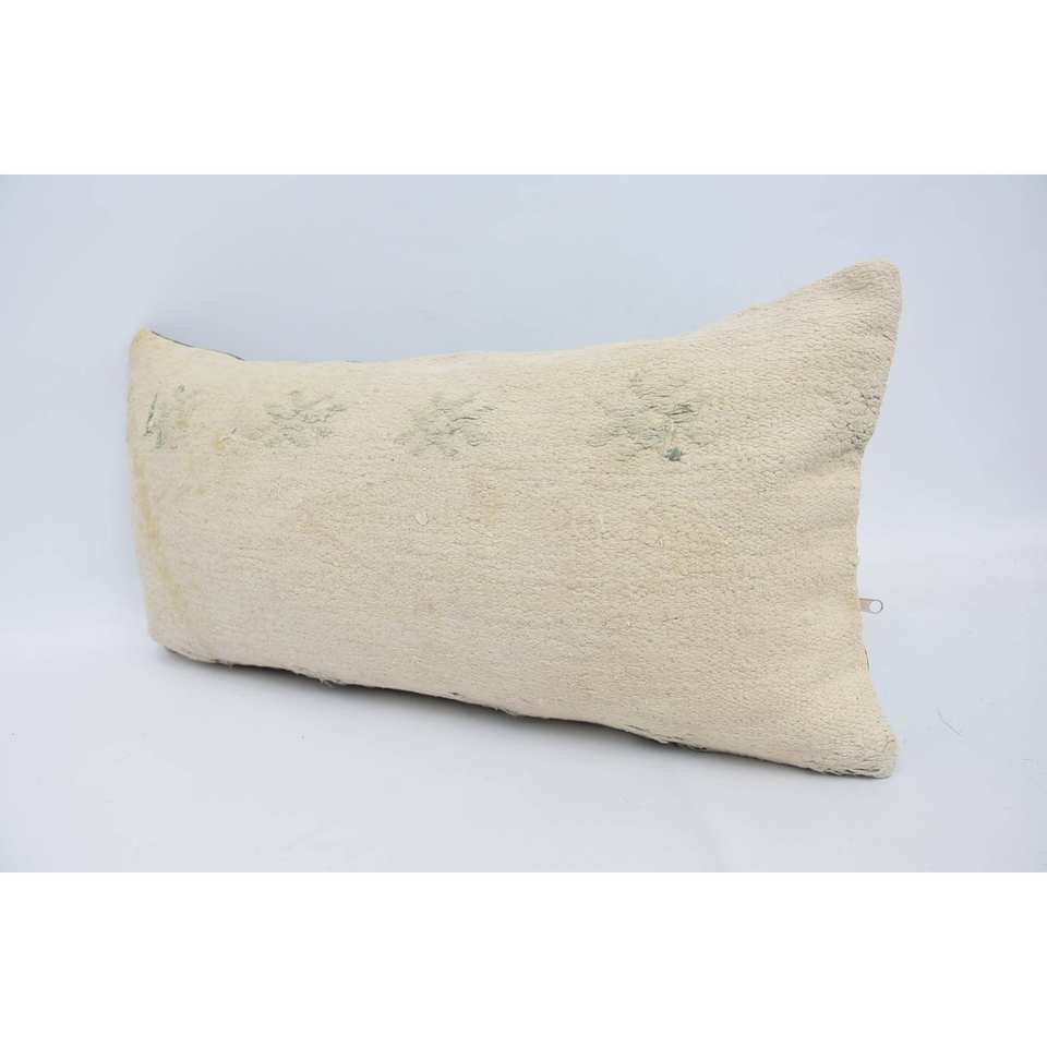 Beige Wool Kantha 12x24 Inch Embroidered Vintage Pattern Accent Pillow Rustic Woven Technique
