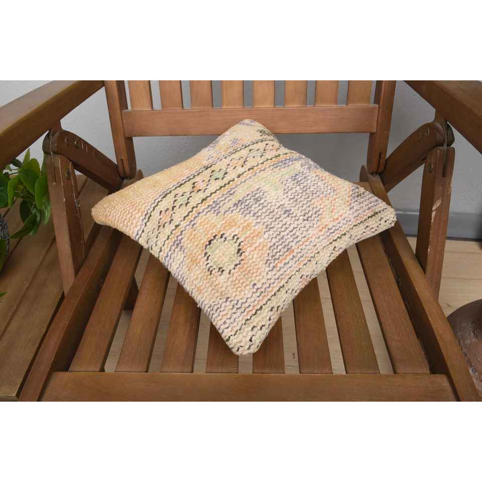 Beige Wool Kantha Patchwork Bolster Pillow 12x12 Inch Boho Woven Embroidered Printed Floral Square Vintage Design Rustic Floor