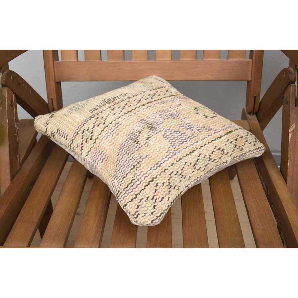 Beige Wool Kantha Patchwork Pillow 12x12 Inch Luxury Vintage Embroidered Fluffy Rustic Throw Pillow for Floor Use