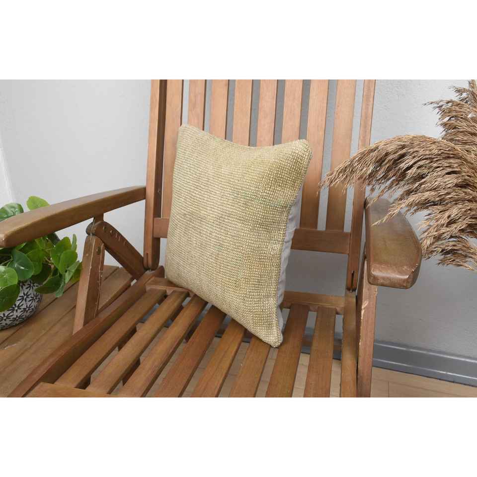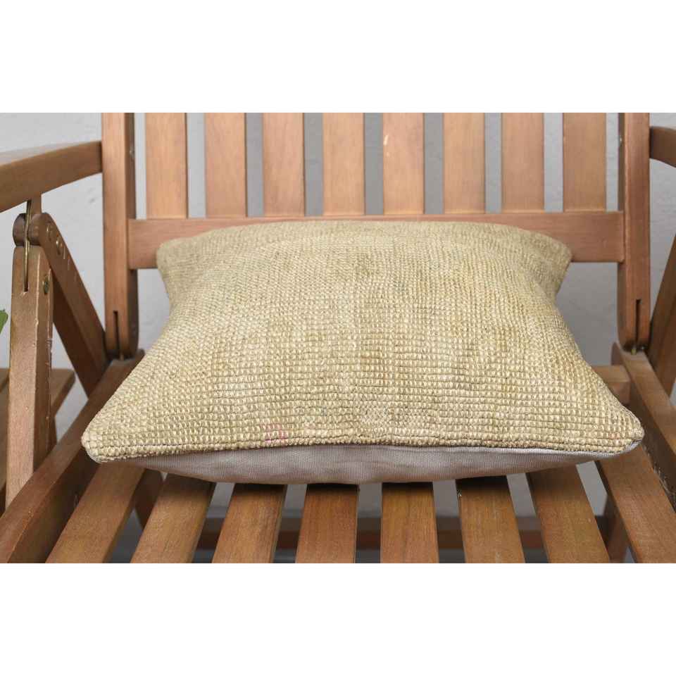 Beige Wool Kantha Patchwork Pillow 14x14 Inch Luxury Vintage Embroidered Fluffy Rustic Throw Pillow for Floor Use
