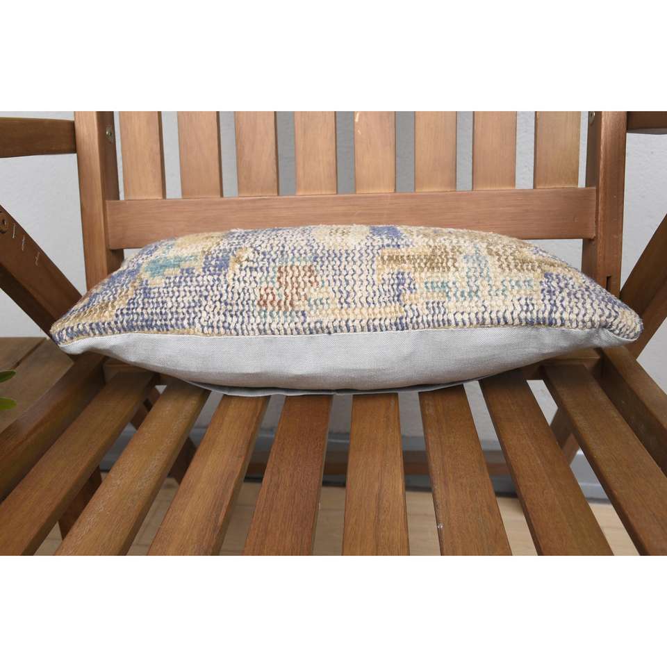 Beige Wool Kantha Patchwork Pillow 8x16 Inch Rustic Vintage Embroidered Throw Pillow Portable Christmas Style for Car and Home