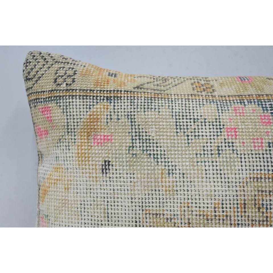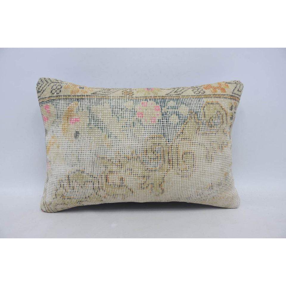 Beige Wool Kantha Patchwork Toile Pillow 16x24 Inch Floral Embroidered Vintage Accent Pillow for Sofa Decor