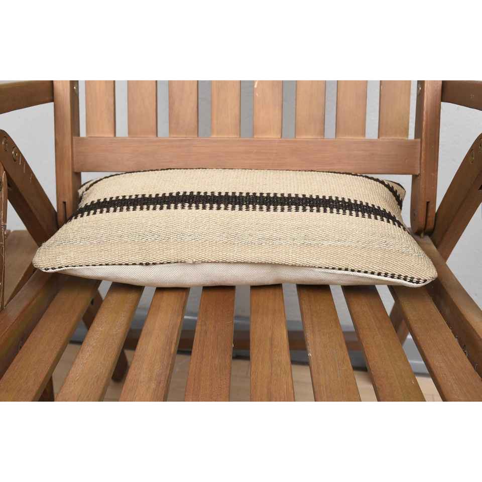 Beige Wool Kilim Patchwork Decorative Accent Pillow 8x16 Inch Vintage Fluffy Leaves Pattern for Sofa Usage