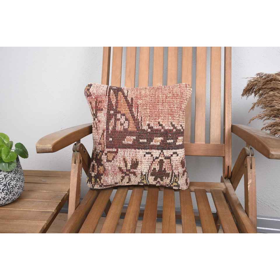 Beige Wool Kilim Patchwork Pillow 14x14 Inch Luxurious Rustic Throw Pillow Vintage Fluffy Embroidered Pattern for Bedding Floor