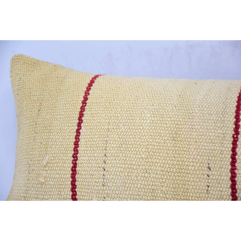 Beige Wool Pillow 12x48 Inch Kilim Patchwork Luxury Vintage Floral & Plant Accent for Kitchen Woven 18x18