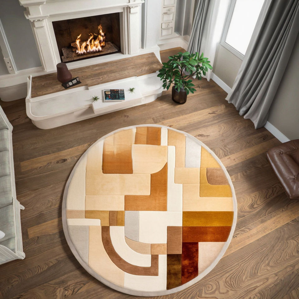 Beige, brown and Cream Circle High and Low Pile Rug Handmade Hand Tufted Area Rug for living room and Office 3,4,5,6,7,8,9 ft