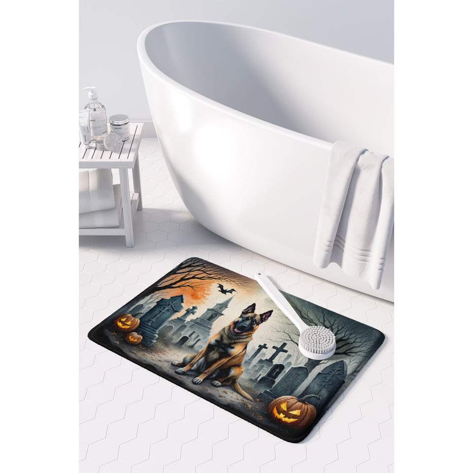 Belgian Malinois Spooky Halloween Memory Foam Bath Mat Machine Washable Anti-Fatigue Kitchen Rug Comfort Cushion for Bath