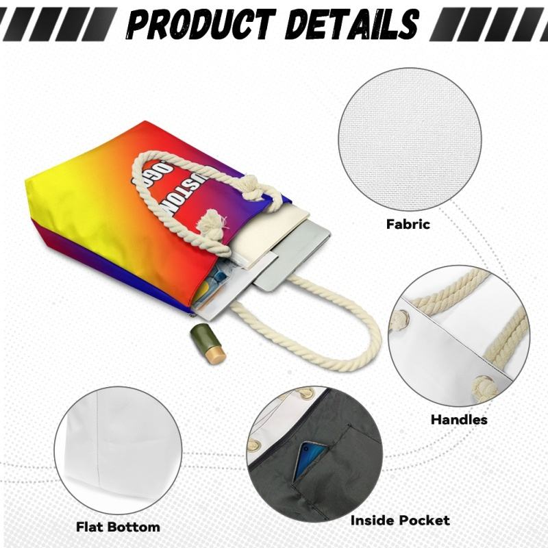 Belize Special Pattern Women PU Rope Handbag Dropship Print Tote Bag Durable Personality Vacation Shoulder Bag Girl Zipper