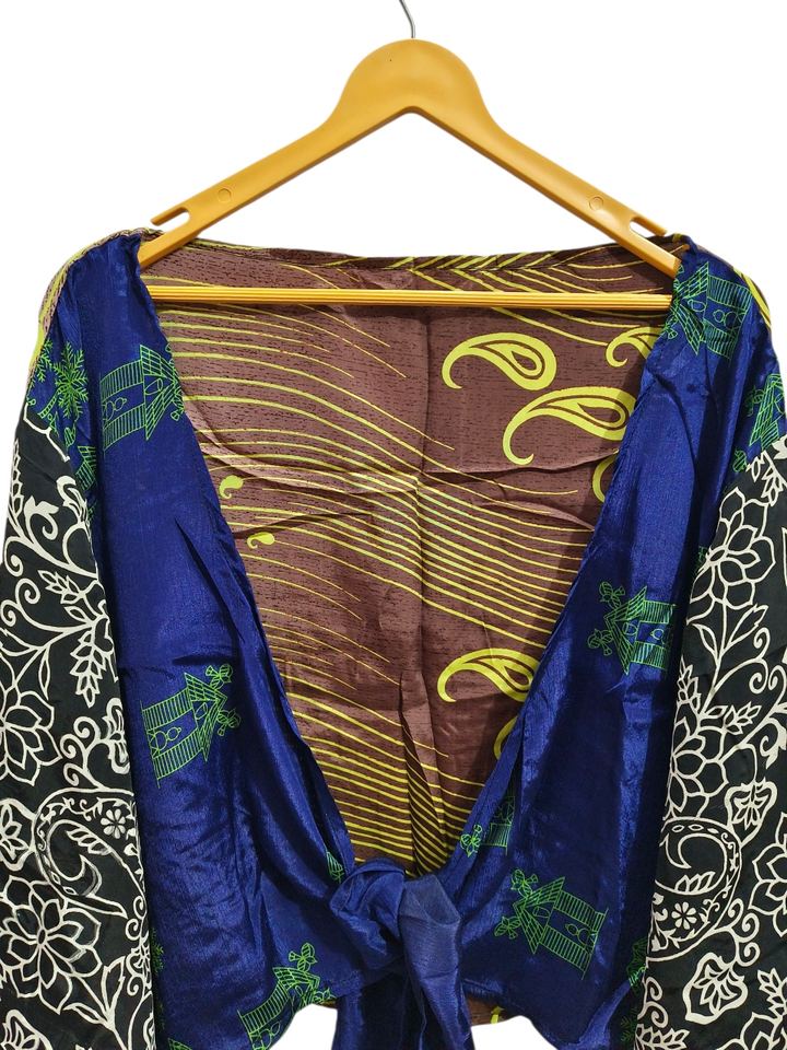 Bell Sleeve Crop Top Silk Tie Top, Handmade Indian Wrap Top, Hippie Front Tie Summer Top, Wrap Around Silk Tunic