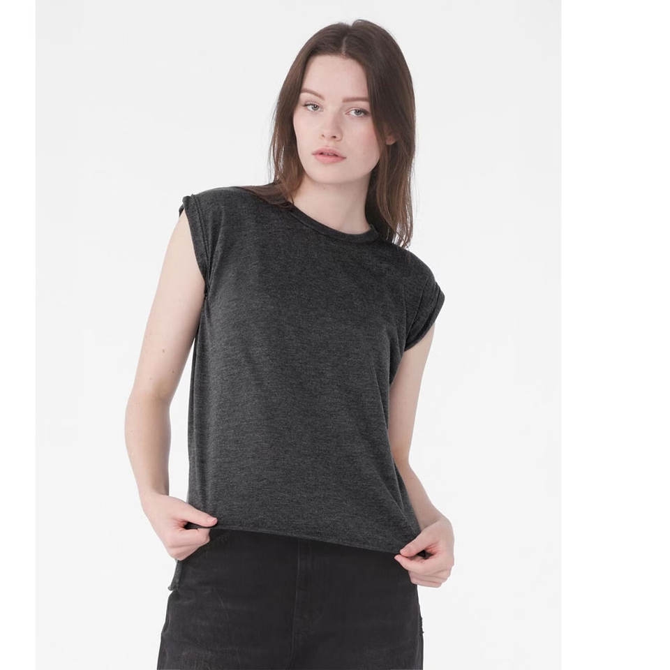 WOMEN'S FLOWY MUSCLE TEE WITH ROLLED CUFF