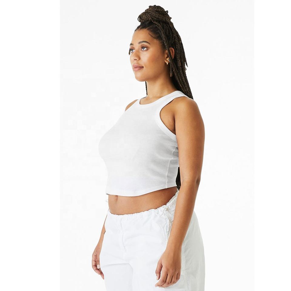 Bella Canvas Solid White Blend 1019 WOMEN'S MICRO RIB RACER Crop TANK Top Softest Airlume Cotton Ladies Racer Back Tank Top