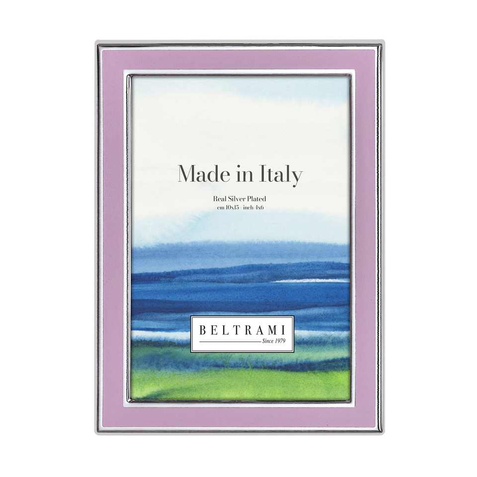 Beltrami Photo Frame 4x6 Inch Real Silver Plated Made In Italy Pink Border Metal Frame