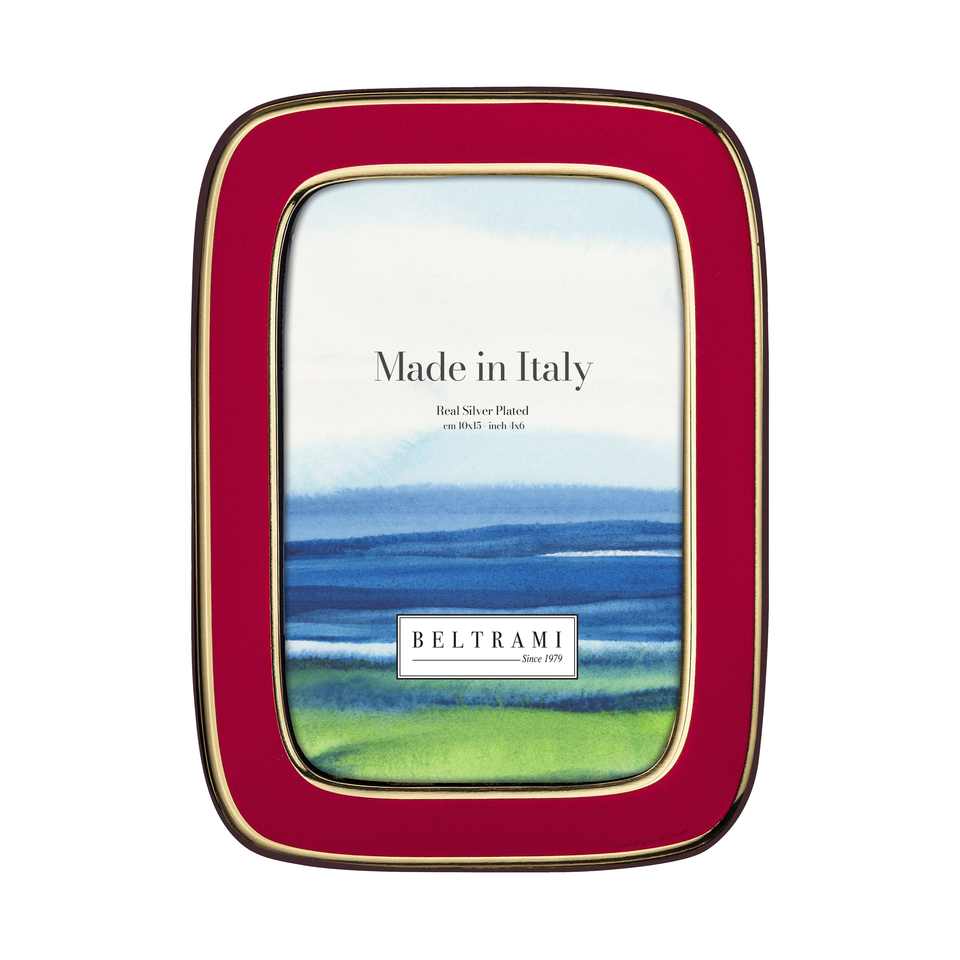 Beltrami Photo Frame 4x6 Inch Real Silver Plated Red Enamel Metal Frame