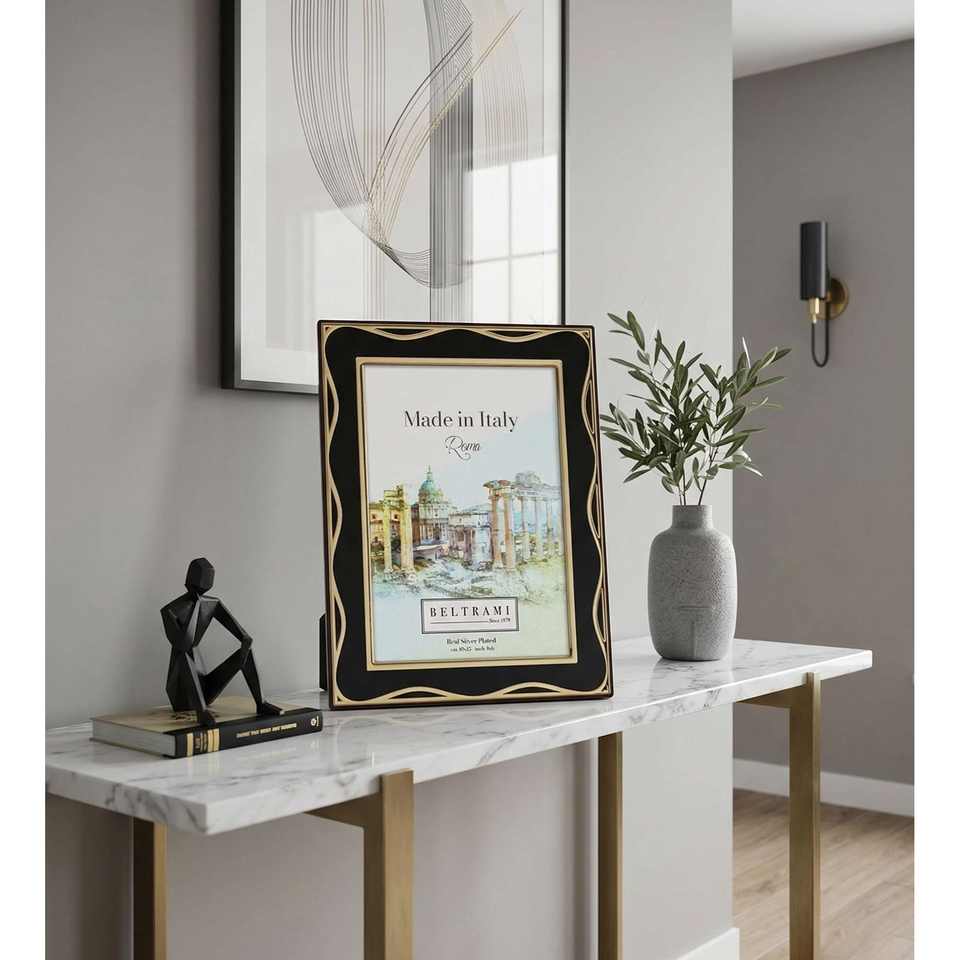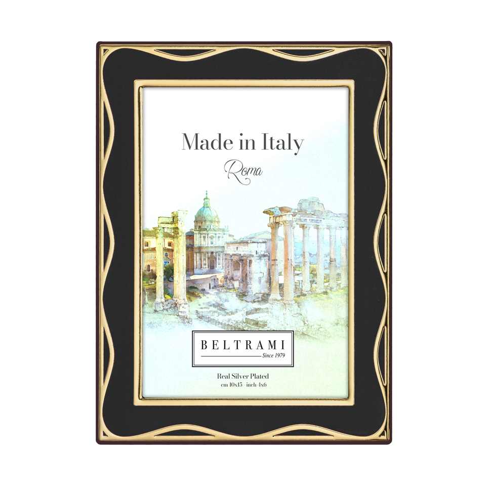 Beltrami Photo Frame 4x6 Inch Real Silver Plated Black Wave Gold Design