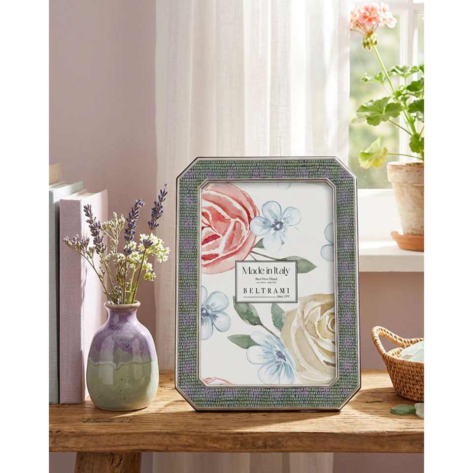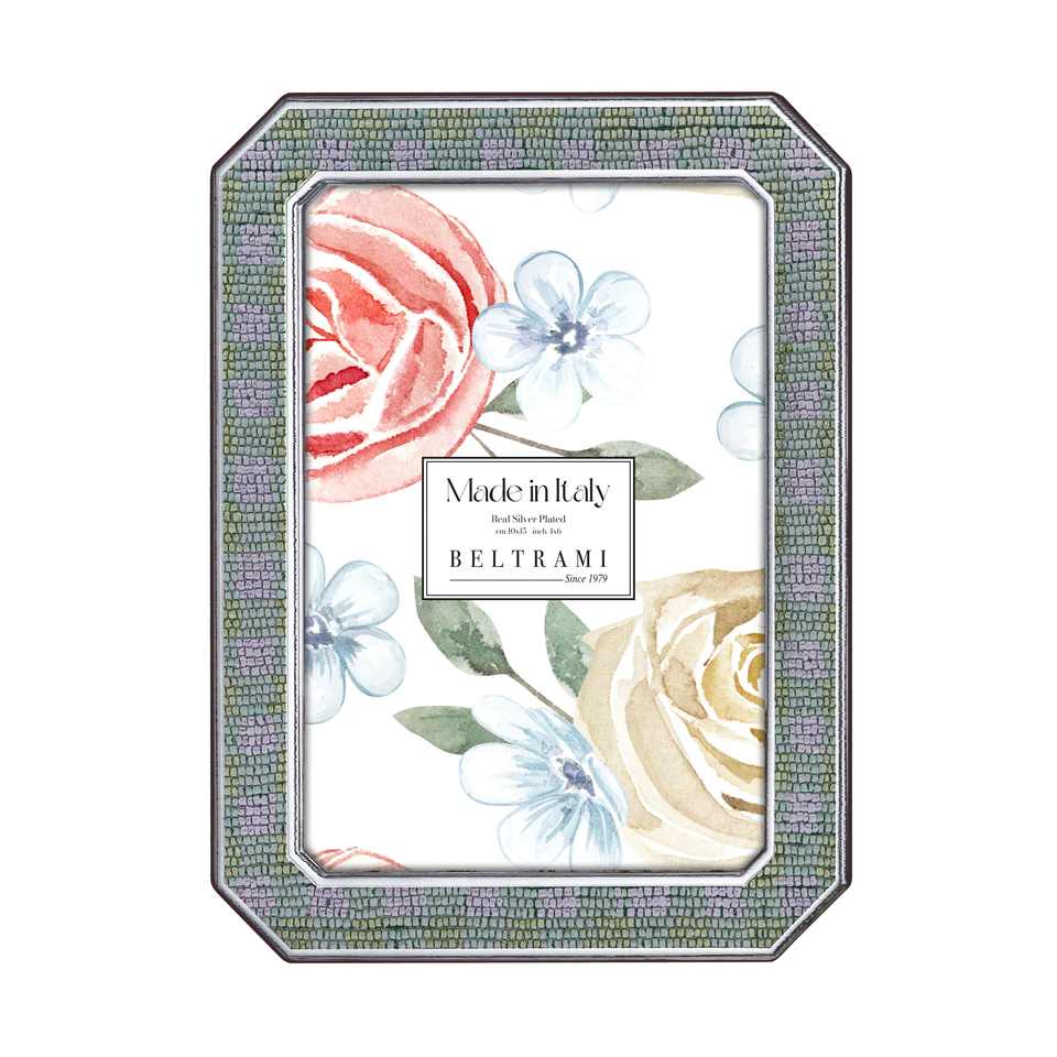Beltrami Photo Frame Octagonal Silver Plated 5x7 Inch Floral Design Picture Frame