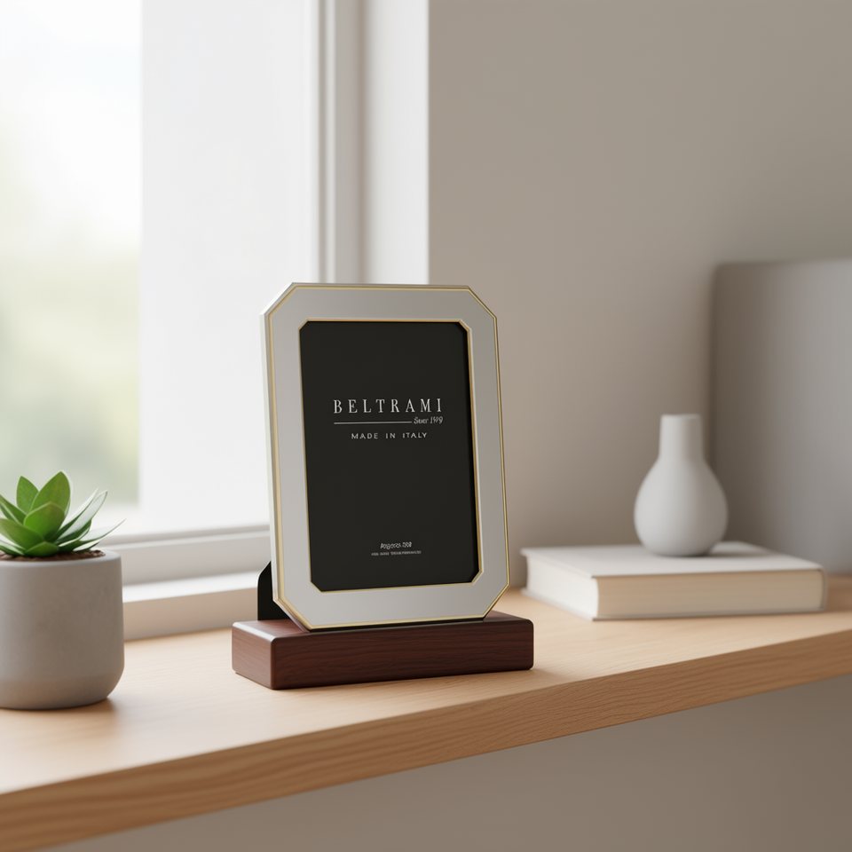 Beltrami Silver Plated Photo Frame with Embossing Printing Durable Rectangle Wood Base Made in Italy Argento 999