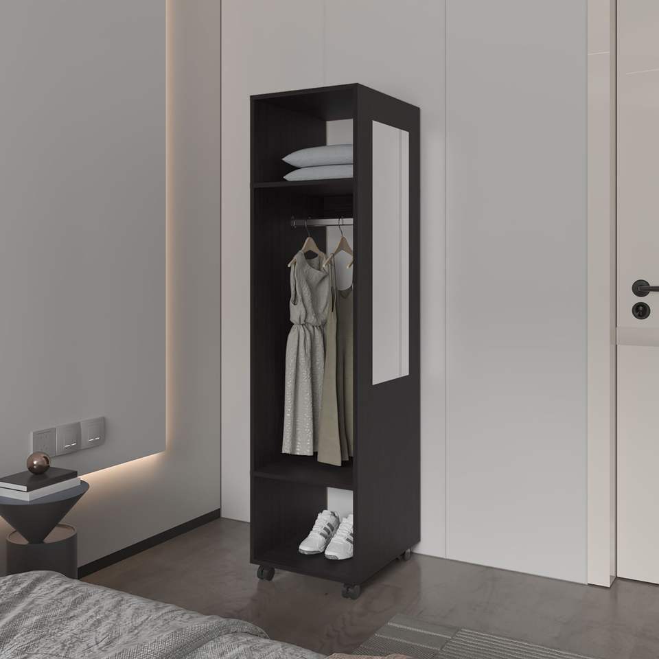 Benson Melamine Wardrobe with Mirror and Open Storage Modern Furniture Solution