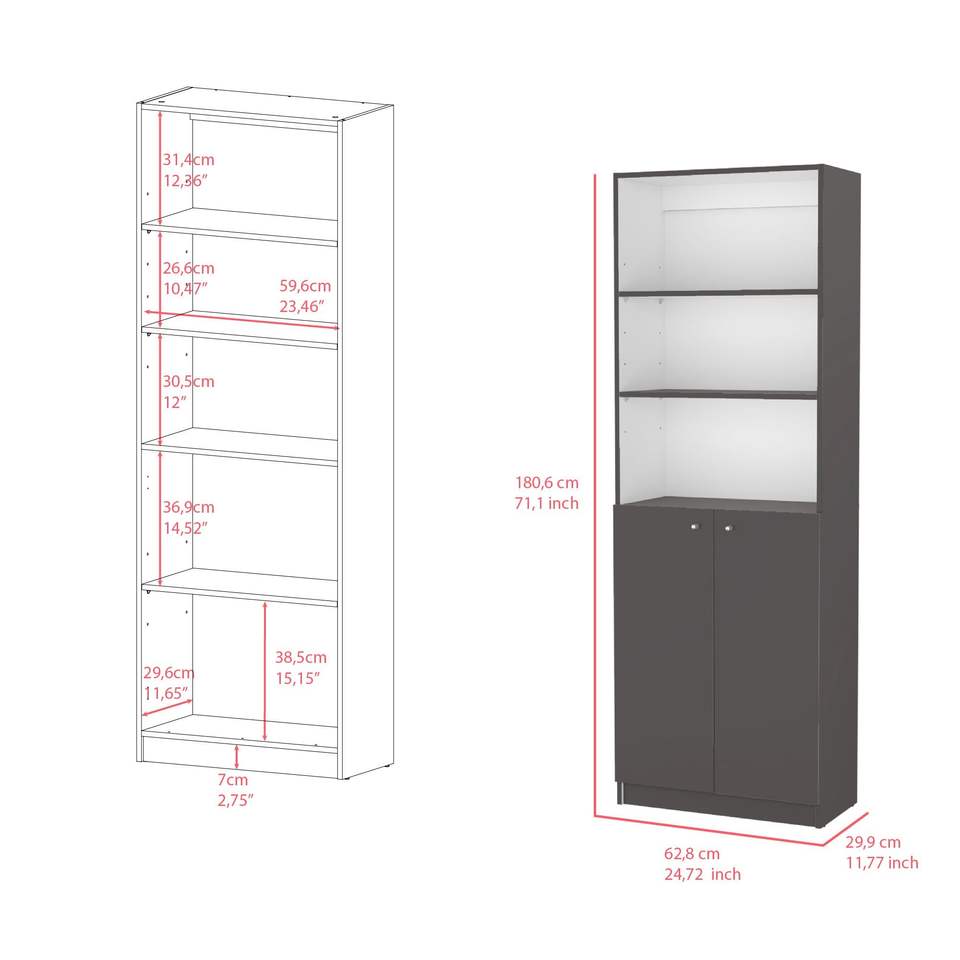 Benzoni Office Dual-Door DB Bookcase in Matt Gray/White Color