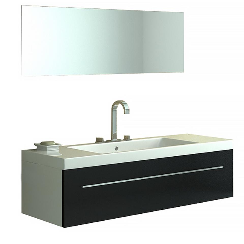 Bern Modern High Gloss Black Bathroom Set Solid Wood and Plywood with Lacquer Door Panel Ceramic Basin Bathroom Cabinet