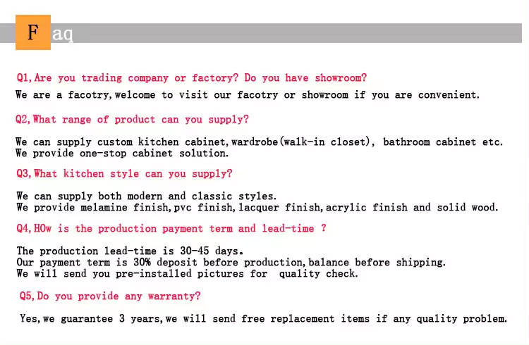 Accessories:Drawer Basket, Lazy Susan Storage, Hinge, Handle & Knob, Faucet, Drawer Slide, Backsplash