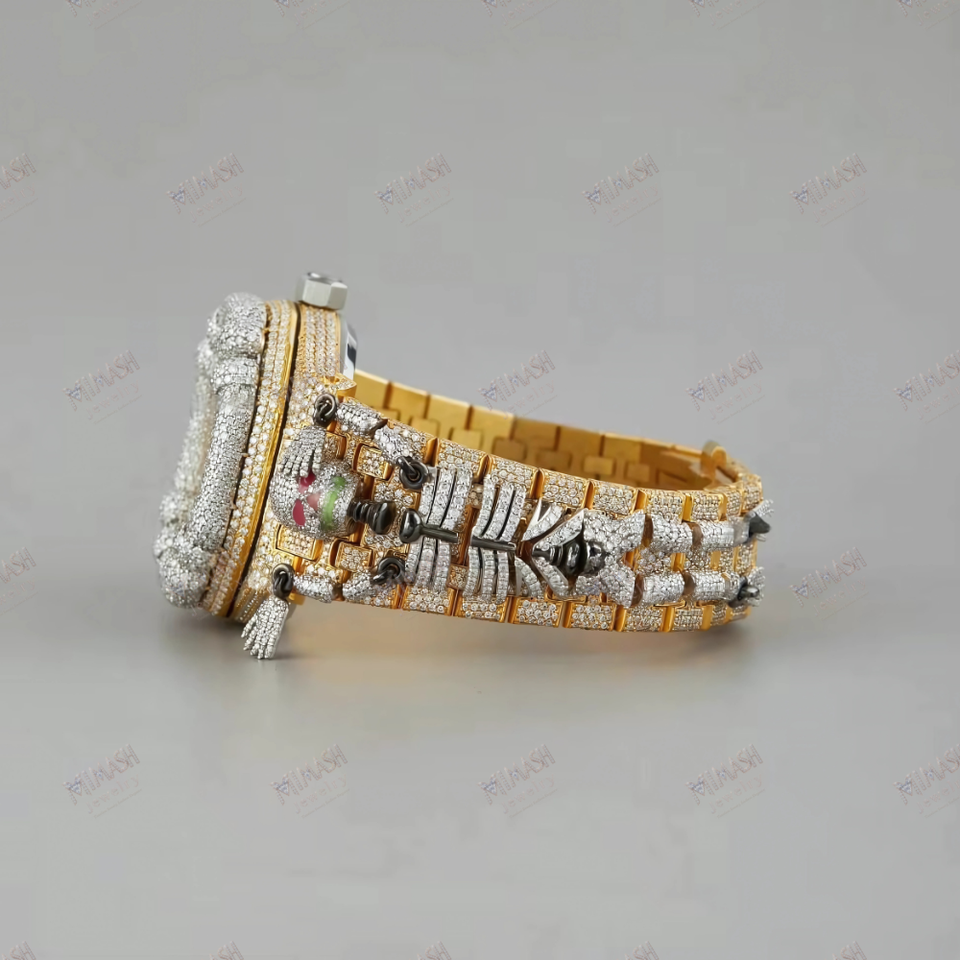 Bespoke Design Gold Plated Women Diamond Watch Yellow White Round Shape Quartz Movement Band Position Fashion Jewelry