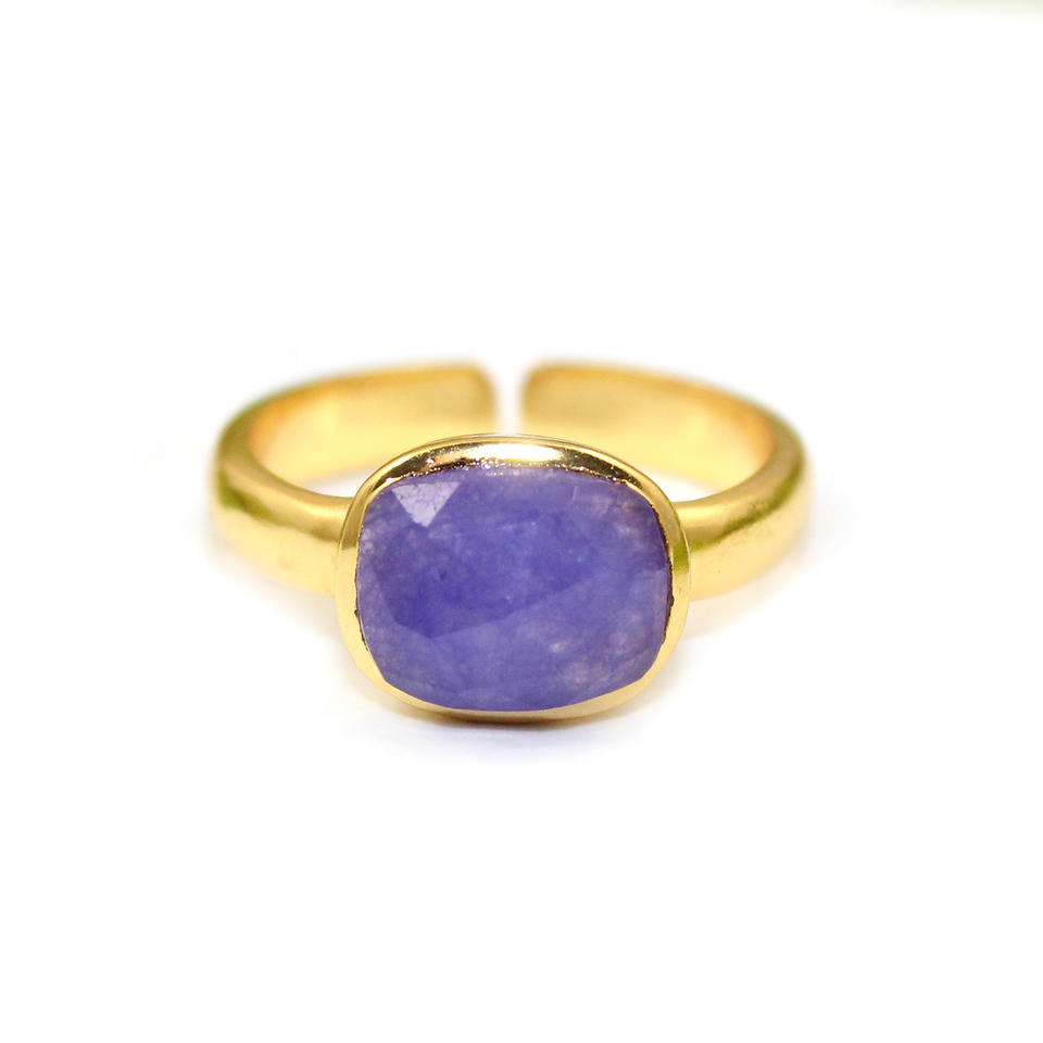 Bespoke Fashion 8x10 MM Cushion Shape Rose Cut Purple Jade Single Stone 24K Gold Plated Ring Brass Luxury Jewelry Direct Factory