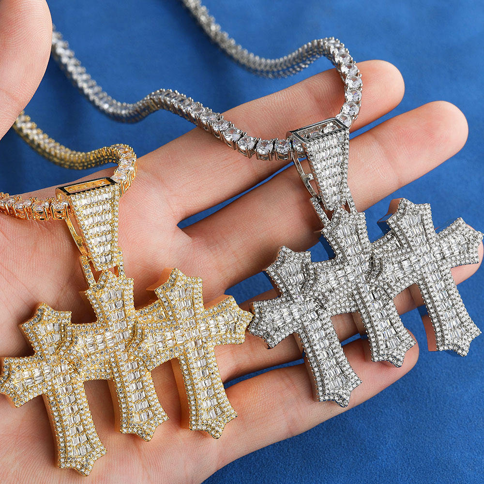 Bespoke Luxury 925 Sterling Silver Emerald Cut Hip Hop Pendant Moissanite Stone Charm High Quality Statement Jewelry