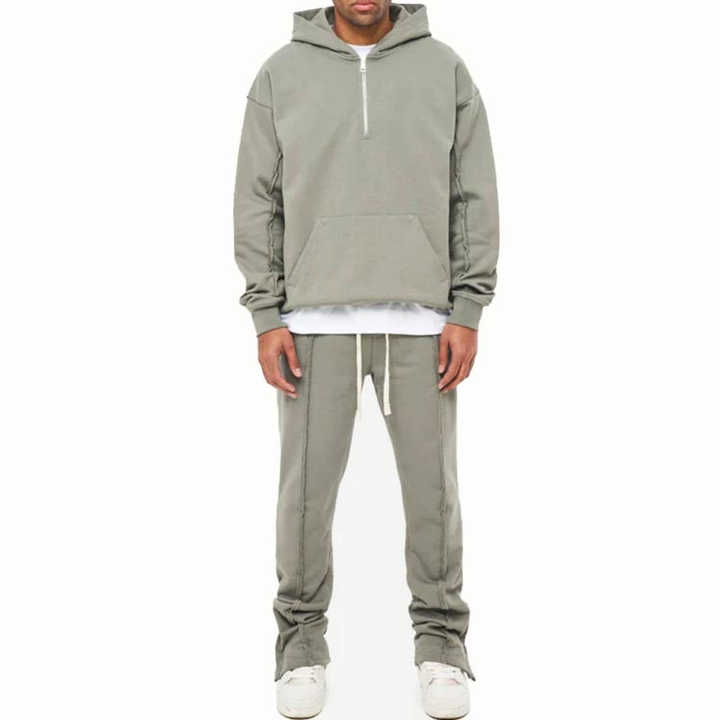 Bespoke Men's Winter Streetwear Oversized Baggy Jogger Tracksuit featuring a Triple Zip-Up Hoodie Rhinestone-Embellished Collar