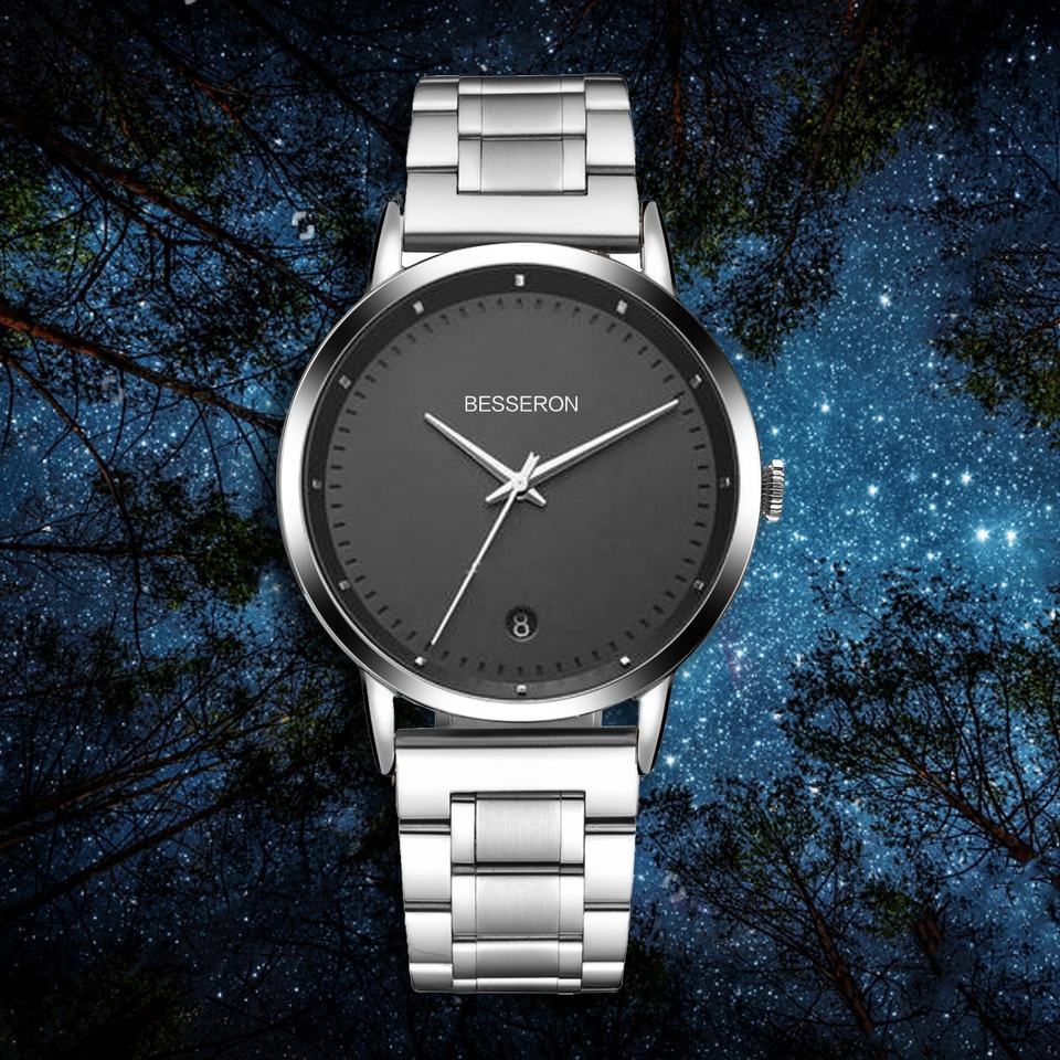 Besseron Original Designer Famous Luxury Wrist All Stainless Steel Band Waterproof Men Quartz Watch in Wristwatch