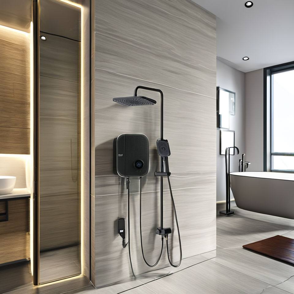 Best 2025 Electric Instant Tankless Water Heater EAS7/D-i 4.5KW Black Canvas Digital Screen DC Pump Household Hotel Spa Use