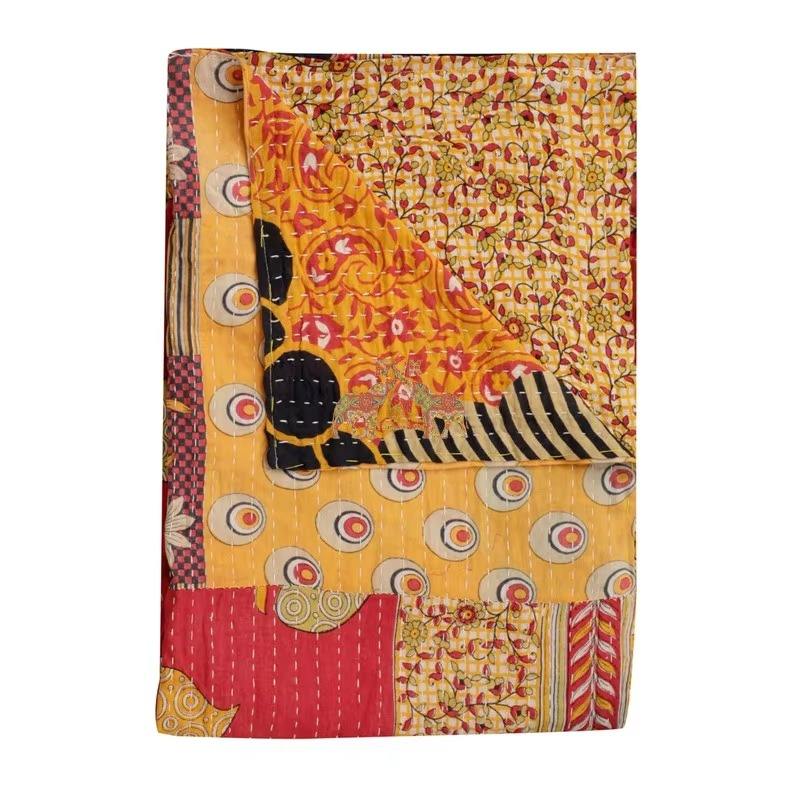 Best Arrivals Cotton Kantha Quilts Handmade Vintage Printed Colorful Old Sari Kantha Throw for Hotel Use