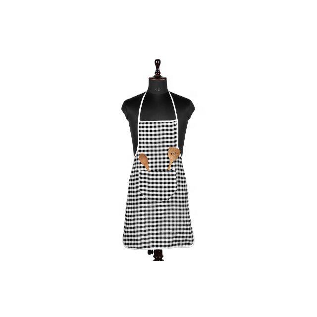 Best Black Checked Embroidered Sleeveless Cotton Linen Kitchen Brief Pinafore Women Home Cooking Baking Waist Kawaii Apron Sets
