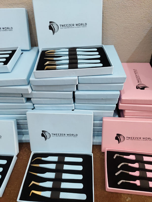 Best Blue Gold Straight 45, 70, 90 Degree Tweezers High Quality Custom Volume Lashes Eyelash Tweezers Made From Stainless Steel