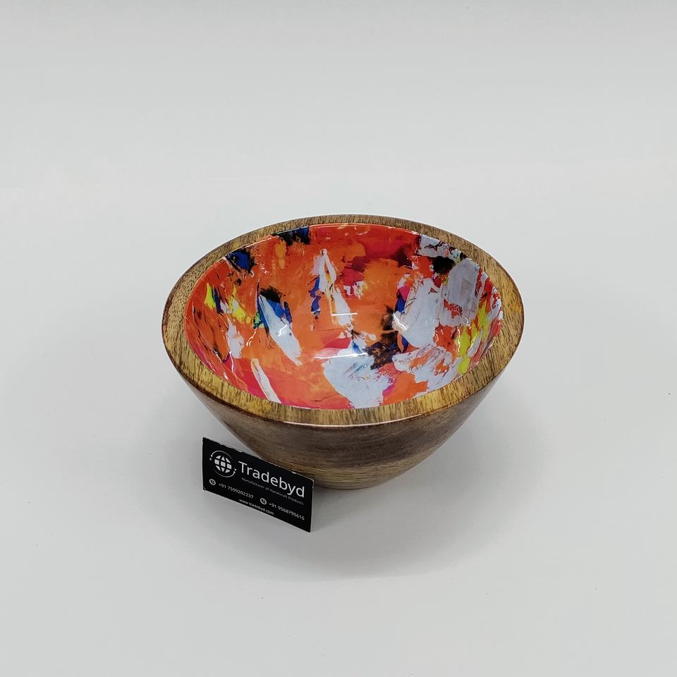 Wholesale Enamel Print Wooden Salad Bowl Handmade in India Round Multi-Color Bowl for Serving and Gifting