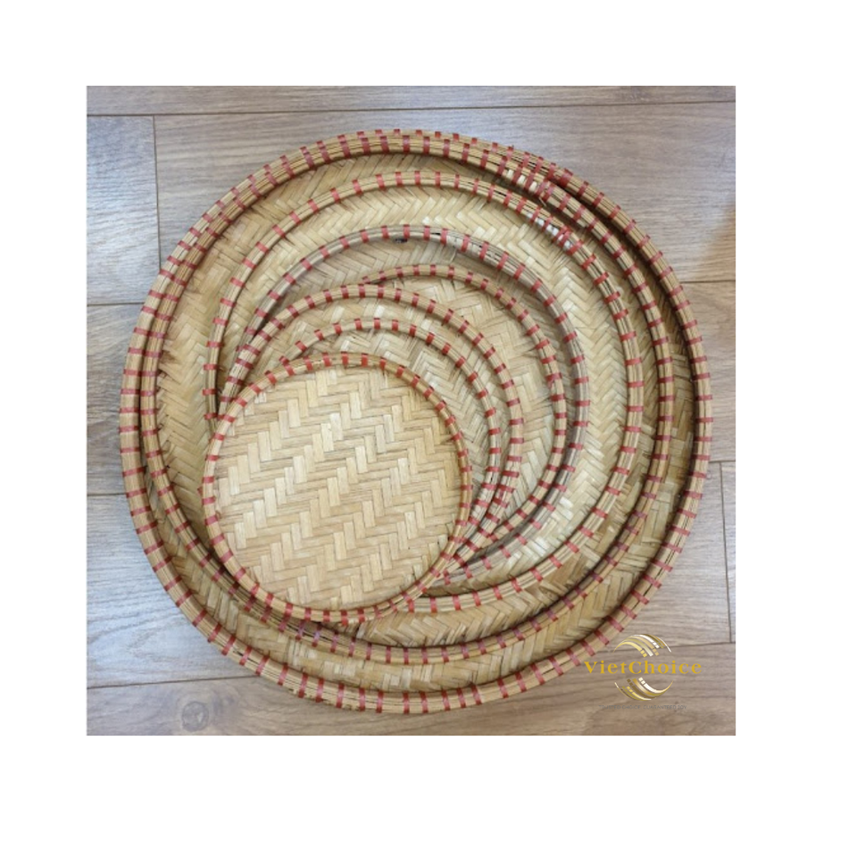 Best Choice High Quality VIETCHOICE Handmade Eco-Friendly Bamboo Circle Vintage Storage Basket Handle Customizable Size Color