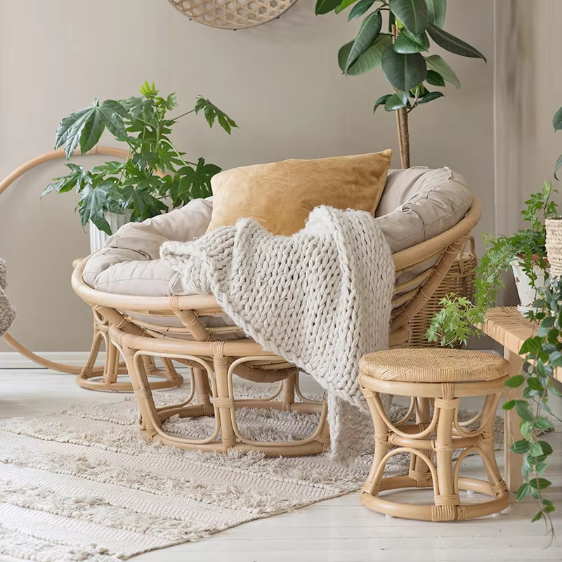 Best Choice Indoor Natural Rattan Papasan Chair Comfortable Cushion Northern Europe Design for Living Room Bedroom Handcrafted