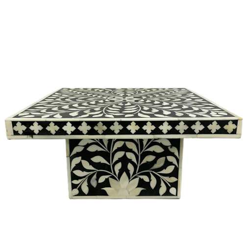 Luxury Floral Bone Mother Pearl Inlaid Handmade Indian Wood Square Cake Stand Christmas Gift Ins Style Chocolate Cake Tool