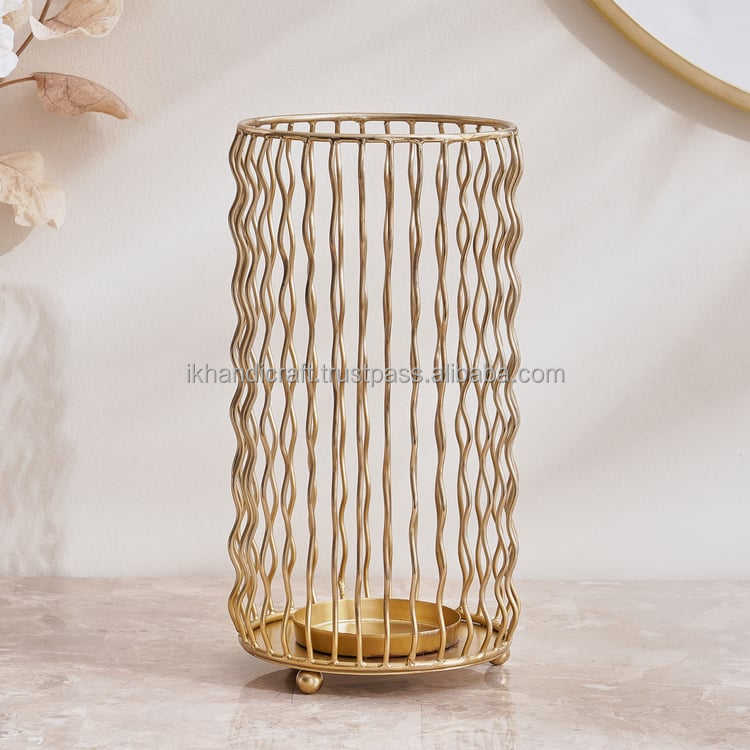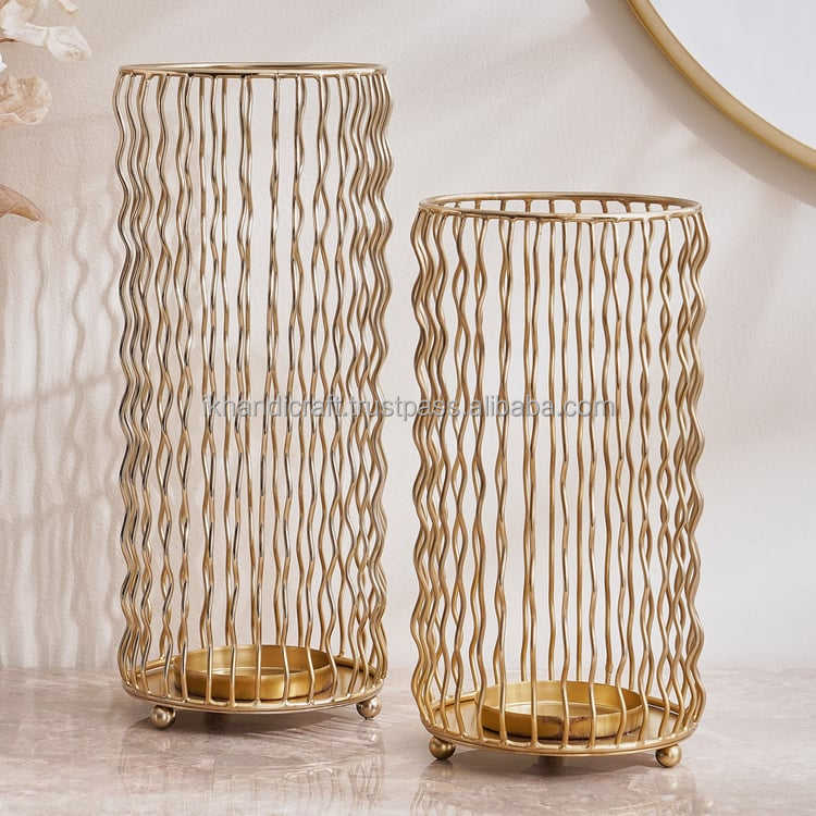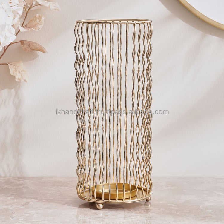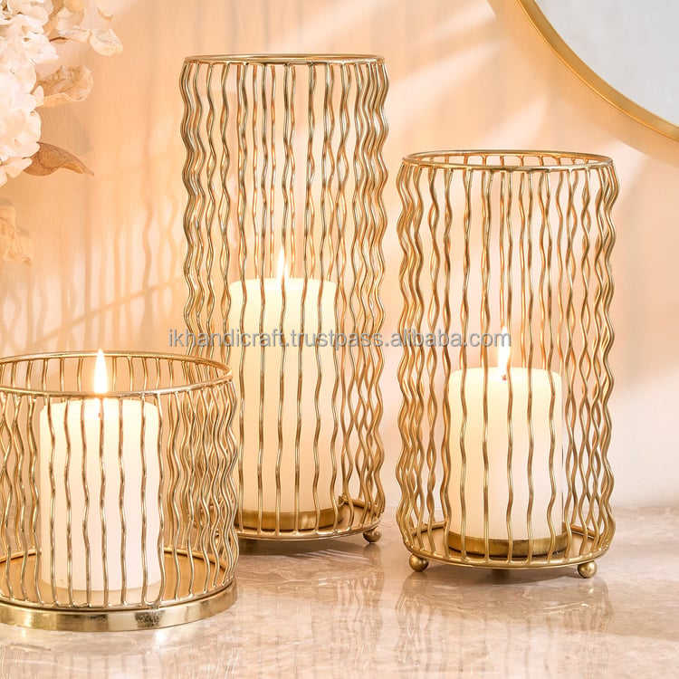 Best Christmas Table Top Decoration Just Launched Gold Zig Zag Wire Metal Candle Pillar Holder for Ramadan Weddings Parties Low