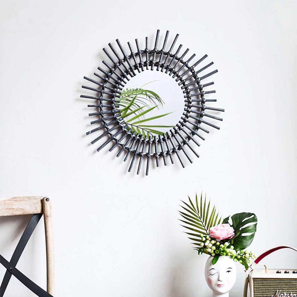 Best Collection Bamboo Rattan Mirrors Frame Light Wall Salon Mirror Customize Size Color Makeup Vanity Mirror