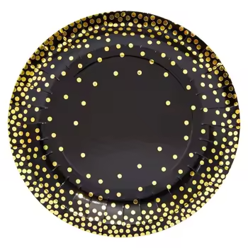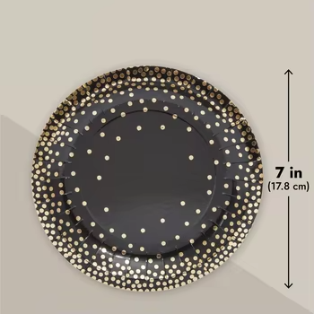 Best Cost Exceptional Quality Foil Modern Parties Desserts Black Gold Hot Selling Disposable Plate Paper